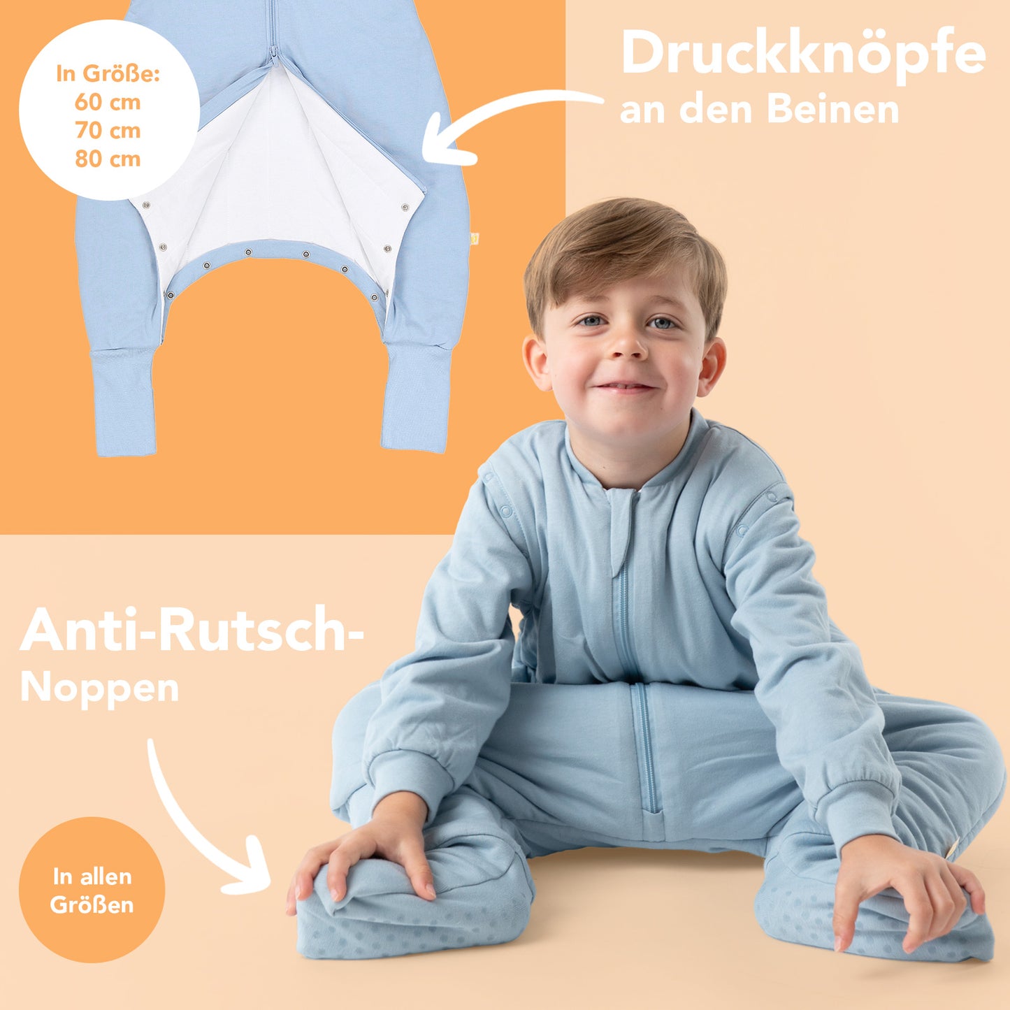 Größen 50/60/70/80 cm: Druckknöpfe für einfaches Windelwechseln